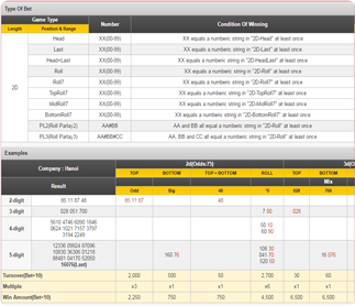 มีหลายวิธีในการเดิมพันลอตเตอรีของพวกเขาเช่น 2D & 3D Top, 2D & 3D บน / ล่าง, 2D Roll และพาร์เลย์แบบผสม เพื่อให้คุณสามารถเพลิดเพลินกับการเดิมพันออนไลน์กับเว็บไซต์นี้และมีโอกาสลุ้นรับรางวัลใหญ่!